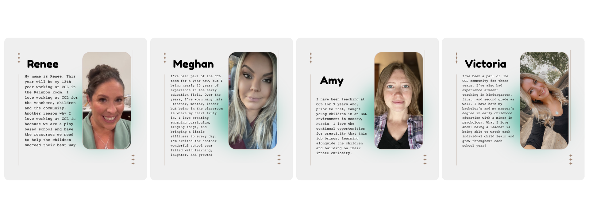 At CCL, our teachers participate in monthly staff meetings throughout the school year to continually refine their understanding of developmentally appropriate practices.